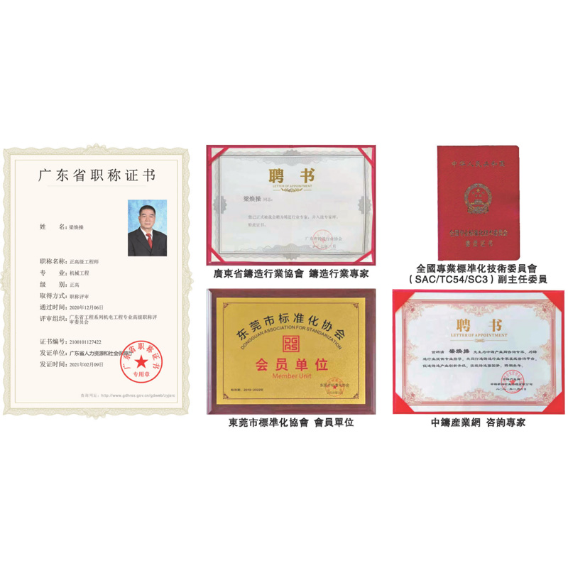 1998年RoHS認證 、2002年“香港工業(yè)優(yōu)異獎”、2009年成為合金材料國家標準起草單位、GB/T13818-2009《壓鑄鋅合金》、GB/T15115-2009《壓鑄鋁合金》、GB/T13821-2009《鋅合金壓鑄件》、通過ISO9001:2015、ISO14001:2015、2021年《壓鑄鋅合金》團體標準。